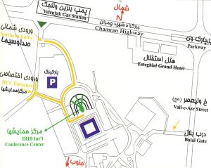 بزرگراه چمران- روبروی پمپ بنزین ولنجک – قبل از هتل استقلال – خروجی مرکز همایش های بین المللی صدا و سیما- درب اختصاصی مرکز همایش ها