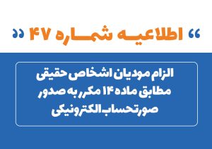 اطلاعیه شماره 47 – الزام مودیان اشخاص حقیقی مطابق ماده 14 مکرر به صدور صورتحساب الکترونیکی