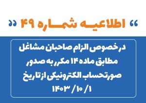 اطلاعیه شماره 49 – در خصوص الزام صاحبان مشاغل مطابق ماده 14 مکرر به صدور صورتحساب الکترونیکی از تاریخ 1403/10/01