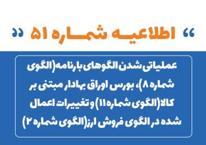 اطلاعیه شماره 51 – عملیاتی شدن الگوهای بارنامه ( الگوی شماره 8 )، بورس اوراق بهادار مبتنی بر کالا ( الگوی شماره 11) و تغییرات اعمال شده در الگوی فروش ارز ( الگوی شماره 2 )